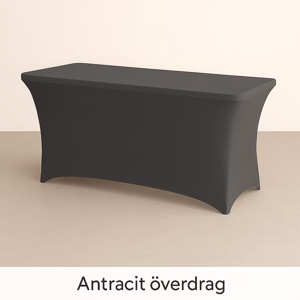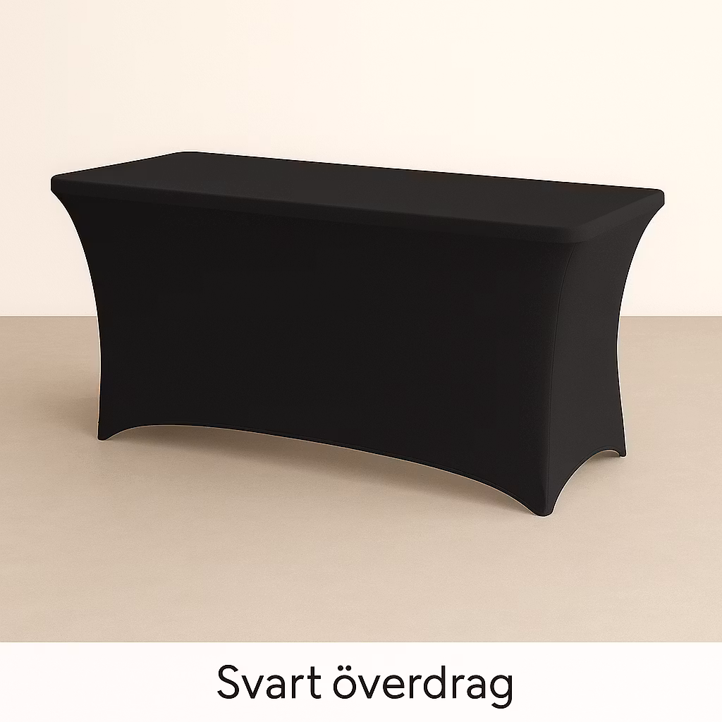 Detta eleganta svarta stretchöverdrag är det perfekta valet för dig som vill ge ditt fällbara bord ett stilrent och professionellt utseende. Överdraget är tillverkat i ett slitstarkt och elastiskt tyg som smidigt formar sig runt bordet för en tight och snygg passform.
